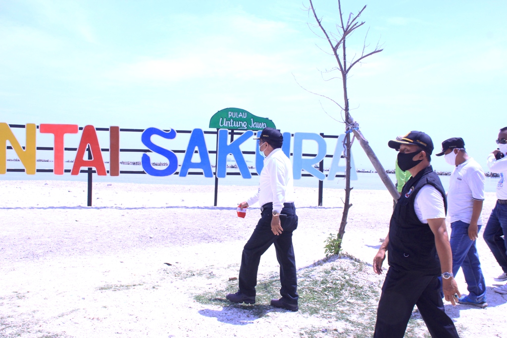 Beberapa lokasi wisata di pulau untung jawa yang juga banyak di gemari wisatawan adalah pantai Sakura, dimana di pantai tersebut selain ada pohon Sakura juga terdapat icon bunga Sakra yang besar dan dapat di jadikan untuk berfoto. Bupati Kabupaten Kepulauan Seribu Junaedi pada saat akan hadiri peringatan Hari Sumpah Pemuda di Balai Warga, menyempatkan mampir kelokasi pantai Sakura tersebut (28/10/2020). Berkunjungnya Bupati ke lokasi wisata sentak membuat para pedagang di wilayah tersebut merapihkan dagangannya. Itulah keadaan lokasi wisata yang membudayakan kejorokan dan ketidak rapihan para pedagang, Bupati meminta agar fungsi Pokdarwis di turunkan di lokasi-lokasi semacam ini, Selain itu Bupati juga melihat jembatan Pengantin yang menghubungkan ke lokasi pohon pengantin terlihat banyak lubang akibat pecah tidak tahannya terhadap panas matahari saat ekstrim.