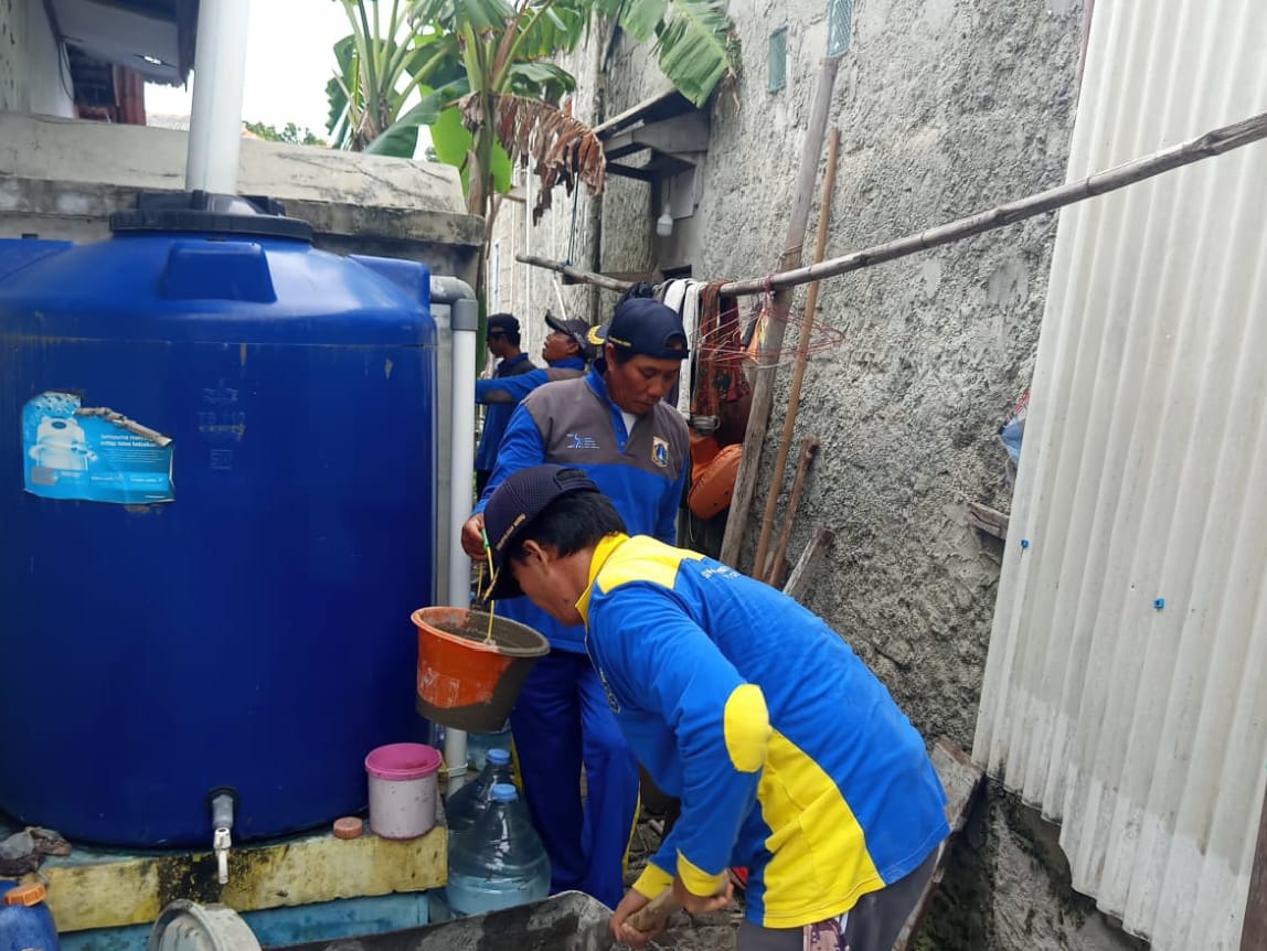 Petugas Suku Dinas Sumber Daya Air (Sudin SDA) Kepulauan Seribu, menyelesaikan pembuatan satu unit Pemanenan Air Hujan (PAH) di wilayah RT 00 ..