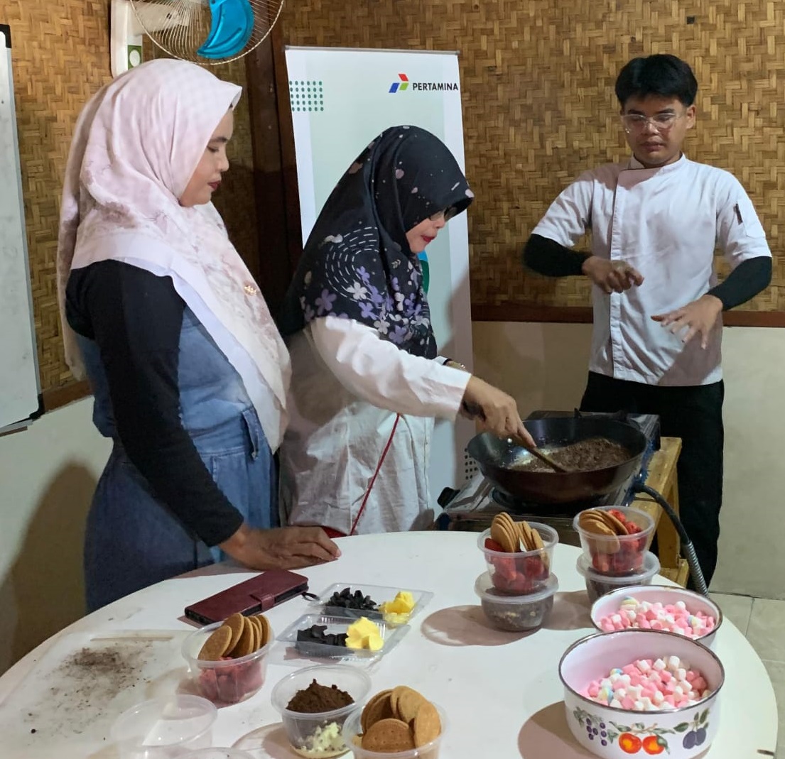Sebanyak lima belas anggota binaan Rumah BUMN Pertamina Kepulauan Seribu, mengikuti pelatihan Pembuatan Hampers Cookies Lebaran Tanpa Oven di ..