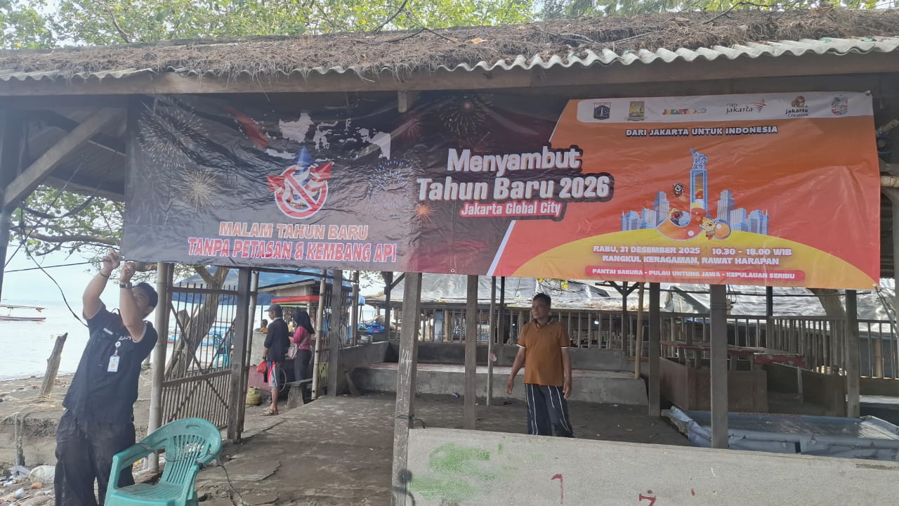 Kegiatan Pergantian Tahun Baru di Kepulauan Seribu berlangsung sederhana, dengan diisi hiburan dan doa lintas agama untuk penyintas bencana Sumatra.Acara yang berlangsung di Pantai Sakura, Pulau Untung Jawa, Kepulauan Se ..