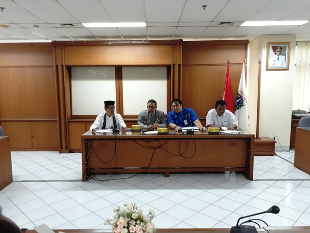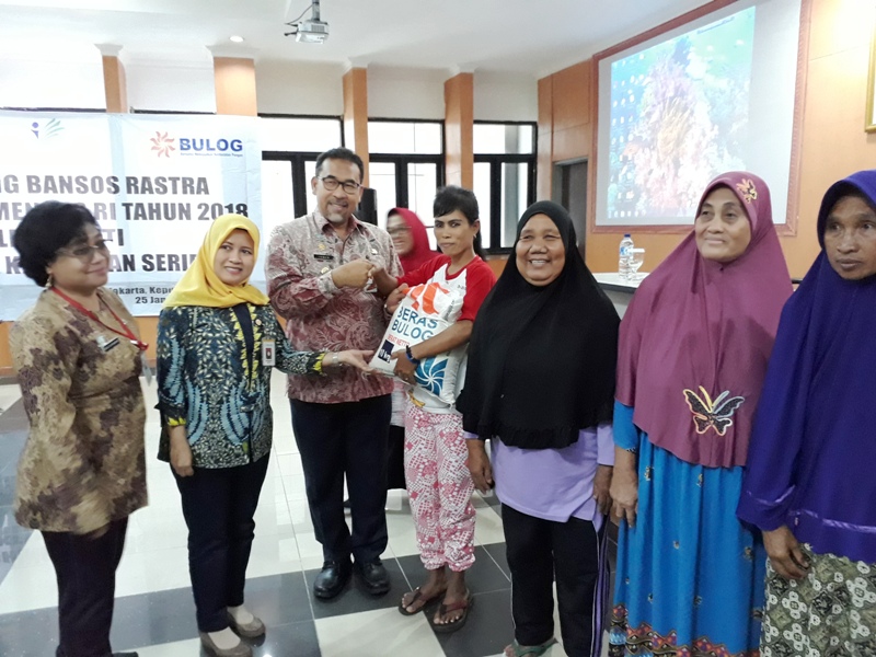 Bupati Kepulauan Seribu, Irmansyah didamping Unit Kerja Perangkat Daerah (UKPD) terkait melaunching penyaluran bantuan sosial (Bansos) beras sejahtera (Rastra) Kementerian Sosial RI bagi masyarakat Kepulauan Seribu di Ru ..