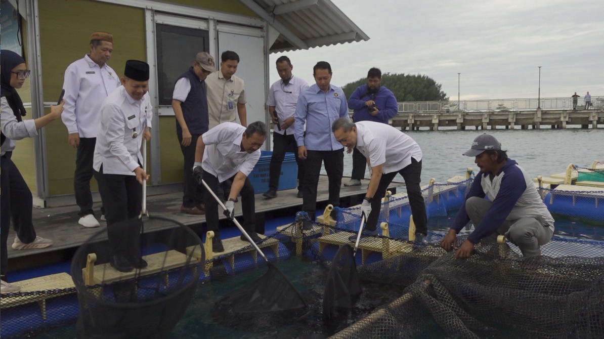 Bupati Kepulauan Seribu, Muhammad Fadjar Churniawan mengapresiasi kegiatan panen 1.500 kilogram ikan kerapu cantang, yang diselenggarakan Baznas Bazis DKI Jakarta di Pulau Tidung, Kepulauan Seribu Selatan, Rabu (29/10/20 ..