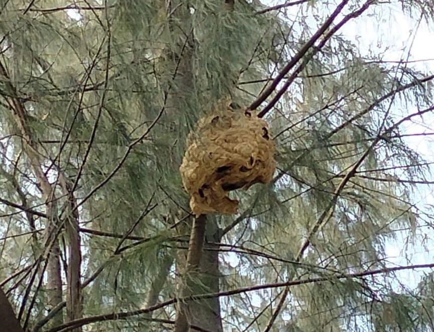 Petugas Sektor 8 Suku Dinas Penanggulangan Kebakaran dan Penyelamatan (Sudin Gulkarmat) Jakarta Utara dan Kepulauan Seribu, berhasil mengevakuasi sarang tawon vespa di Pulau Payung RT 06/04 Kelurahan Pulau Tidung, Kepula ..