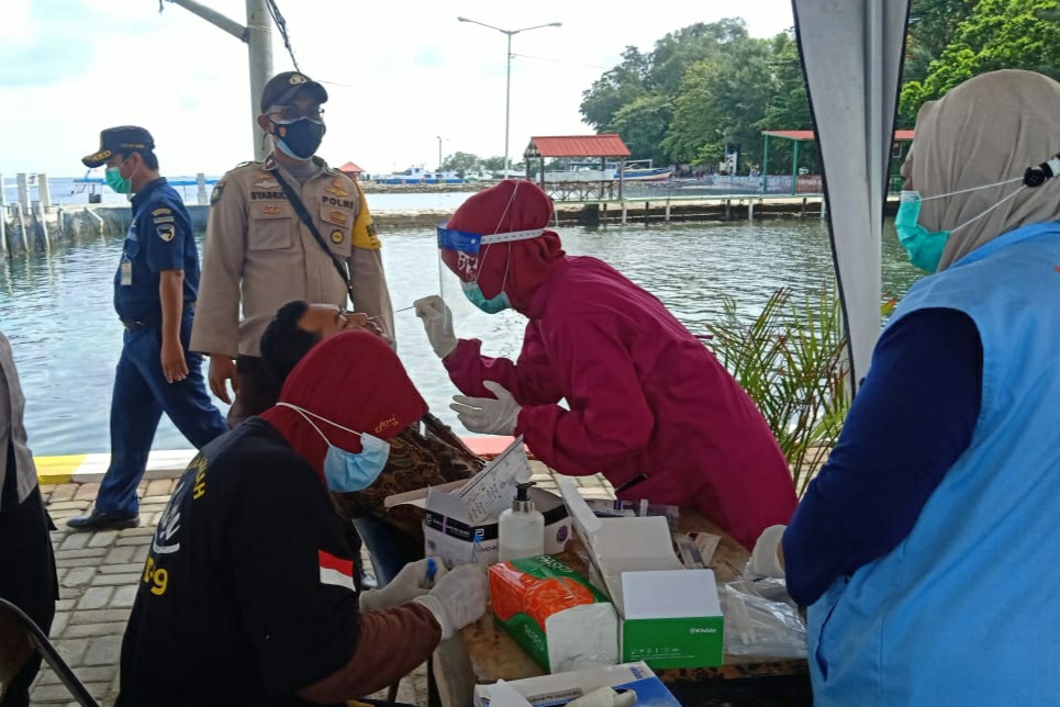 Sebanyak 22 wisatawan menjalani rapid test antigen di dermaga utama Pulau Pramuka, Kelurahan Pulau Panggang Kecamatan Kepulauan Seribu Utara, Sabtu (06/03/2021).Kegiatan tersebut dilakukan bagi para wisatawan yang tidak ..