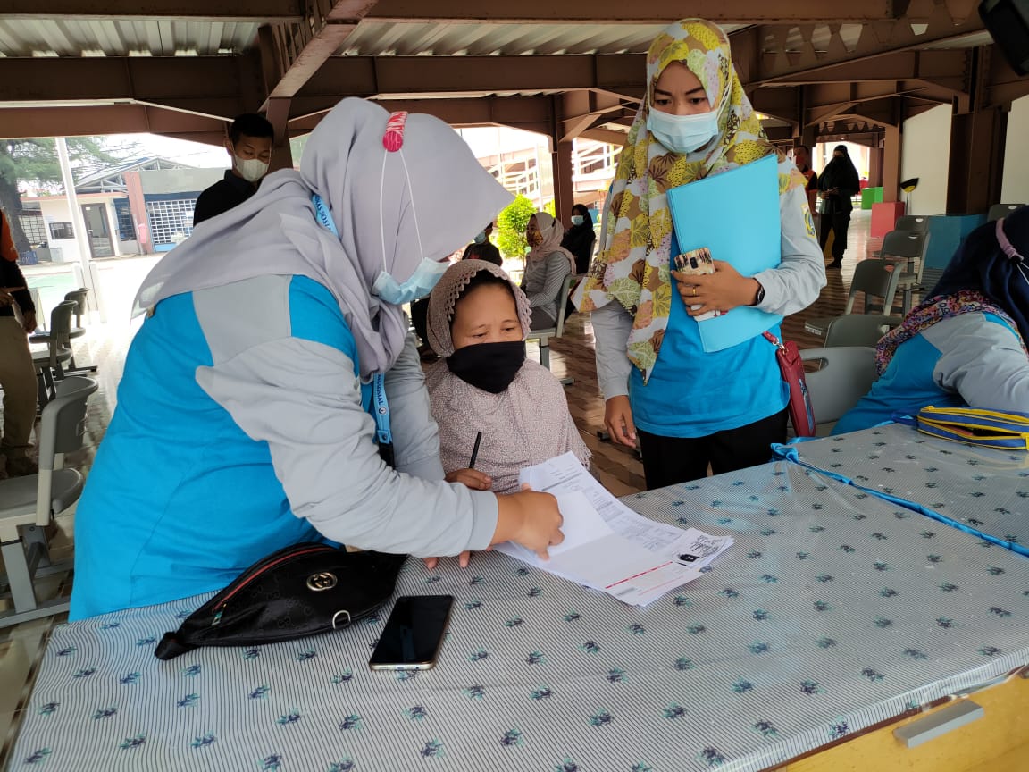 Petugas gabungan melakukan rapid test antigen bagi para penumpang kapal tujuan Kepulauan Seribu, di Dermaga 16 Marina, Ancol, Jakarta Utara, Sabtu (06/03/2021).Menurut Kepala Satuan Pembinaan Masyarakat (Kasat Binma ..