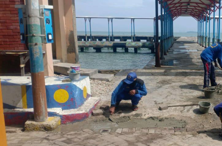 Petugas Suku Dinas Sumber Daya Air (SDA) Kepulauan Seribu melakukan perbaikan lubang biopori dan tutup menhol, yang rusak di wilayah Kelurahan Pulau Untung Jawa, Kepulauan Seribu Selatan. Kepala Suku Dinas SDA Kepul ..