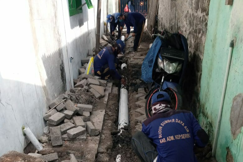 Suku Dinas Sumber Daya Air (SDA) Kepulauan Seribu menyelesaikan pembangunan saluran air untuk warga di RT 003 RW 01, Kelurahan Pulau Kelapa, Kecamatan Kepulauan Seribu Utara. Kepala Suku Dinas SDA Kepulauan Seribu, Ab ..