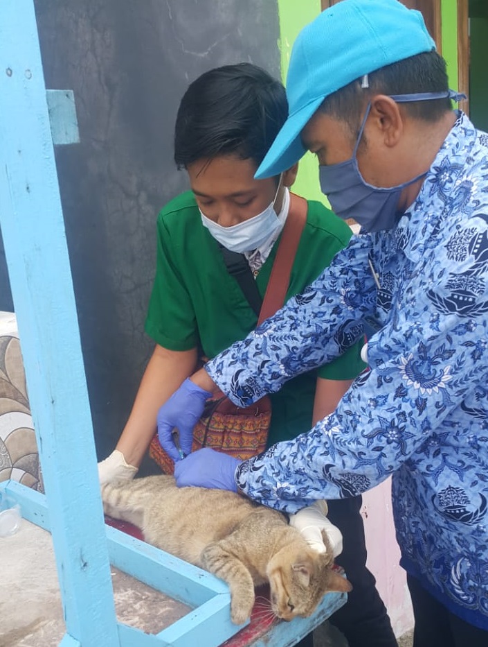 Suku Dinas Ketahanan Pangan, Kelautan dan Pertanian (KPKP) Kabupaten Kepulauan Seribu melakukan vaksinasi terhadap hewan penular rabies (HPR) di Pulau Harapan, Kepulauan Seribu Utara, Selasa (10/11/2020). Kepala Seksi ..