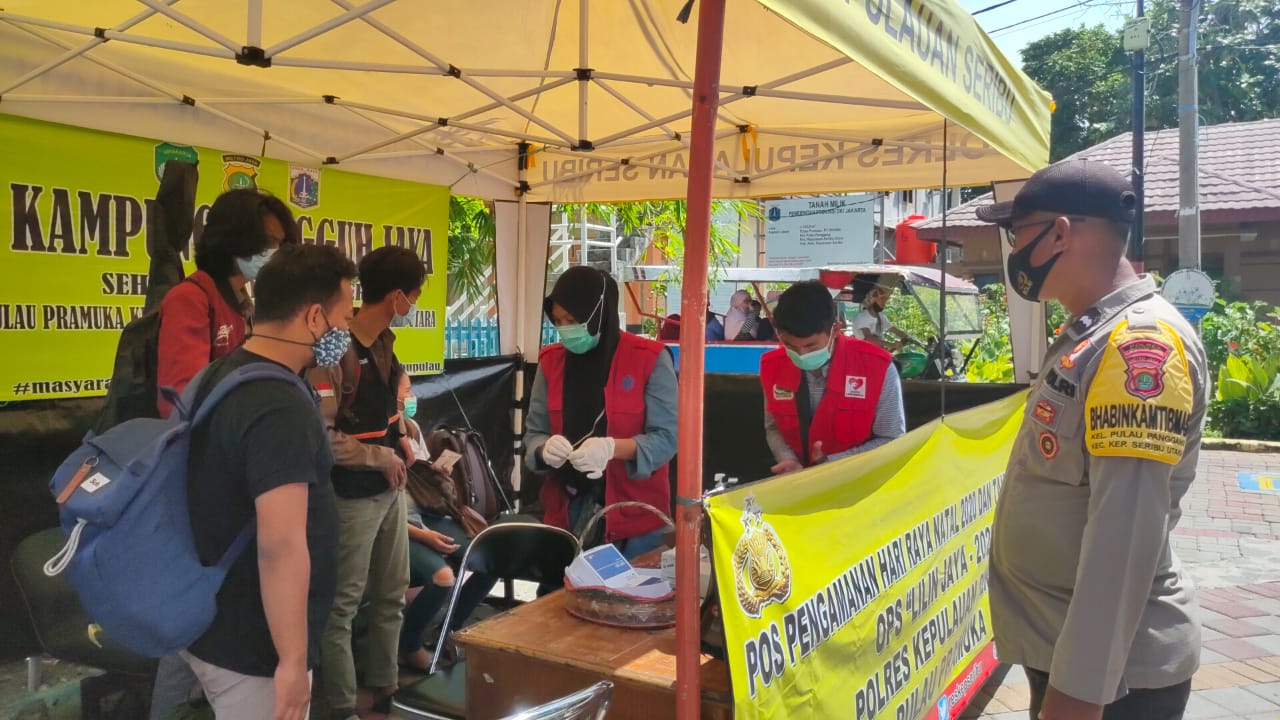 Kelurahan Pulau Untung Jawa, Kecamatan Kepulauan Seribu Selatan melakukan kegiatan penertiban protokol kesehatan (prokes) kepada warga dan wisatawan, untuk mencegah penyebaran Covid-19. Kegiatan yang dilakukan di Jl. ..