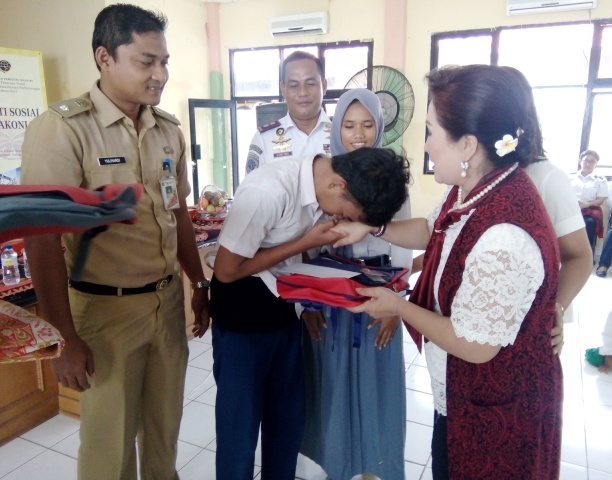 Sebanyak 127 anak yatim piatu di Kelurahan Pulau Panggang, Kepulauan Seribu Utara menerima santunan paket sekolah pada kegiatan bakti sosial Kementerian Perhubungan di Balai Warga Pulau Pramuka, Selasa (12/12/2017) ..