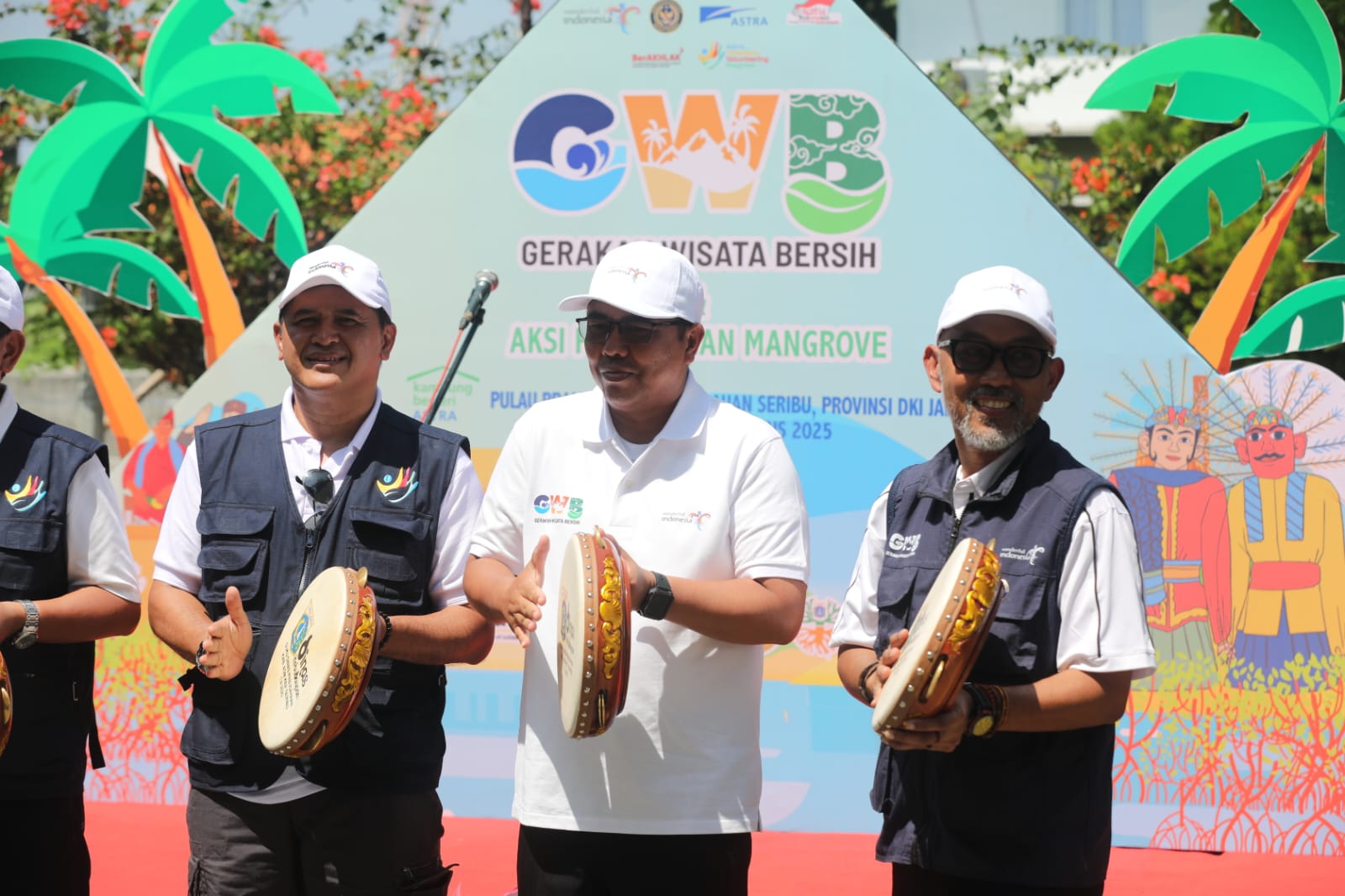 Wakil Bupati Kepulauan Seribu, Aceng Zaeni, mengaktifkan Gerakan Wisata Bersih di Plaza Kabupaten Kepulauan Seribu, Pulau Pramuka, Rabu (27/08/2025).Program ini bertujuan meningkatkan kesadaran masyarakat, sekaligus memp ..