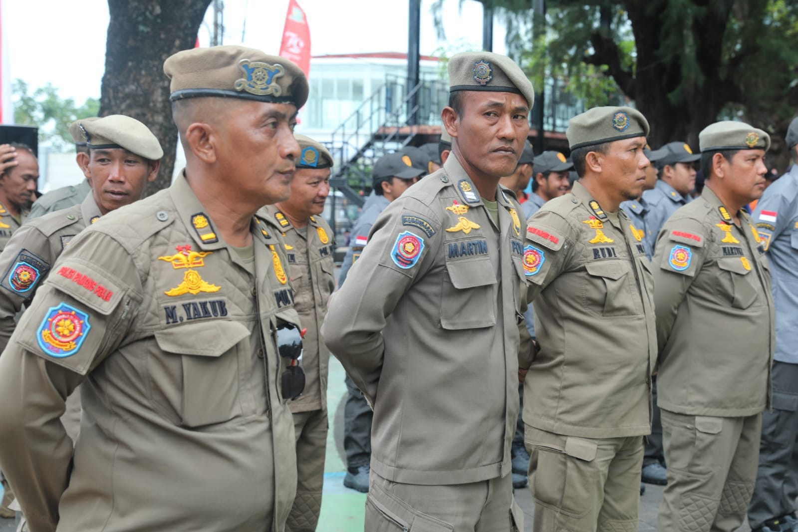 Petugas Sektor 7 Suku Dinas Penanggulangan Kebakaran dan Penyelamatan (Sudin Gulkarmat) Jakarta Utara dan Kepulauan Seribu, melakukan penyemprotan disinfektan di jalan protokol RW 01 Pulau Harapan, Kelurahan Pulau Harapan, Kecamatan Kepulauan Seribu Utara.