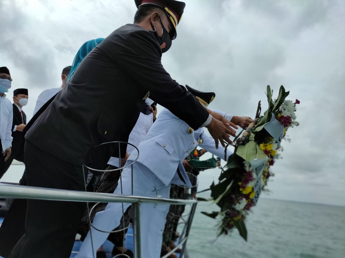 Forum Koordinasi Pimpinan Kabupaten (Forkopimkab) Kepulauan Seribu menyelenggarakan doa bersama dan tabur bunga di perairan Pulau Lancang, Kelurahan Pulau Pari, Kecamatan Kepulauan Seribu Selatan, Jumat (22/01/2021).